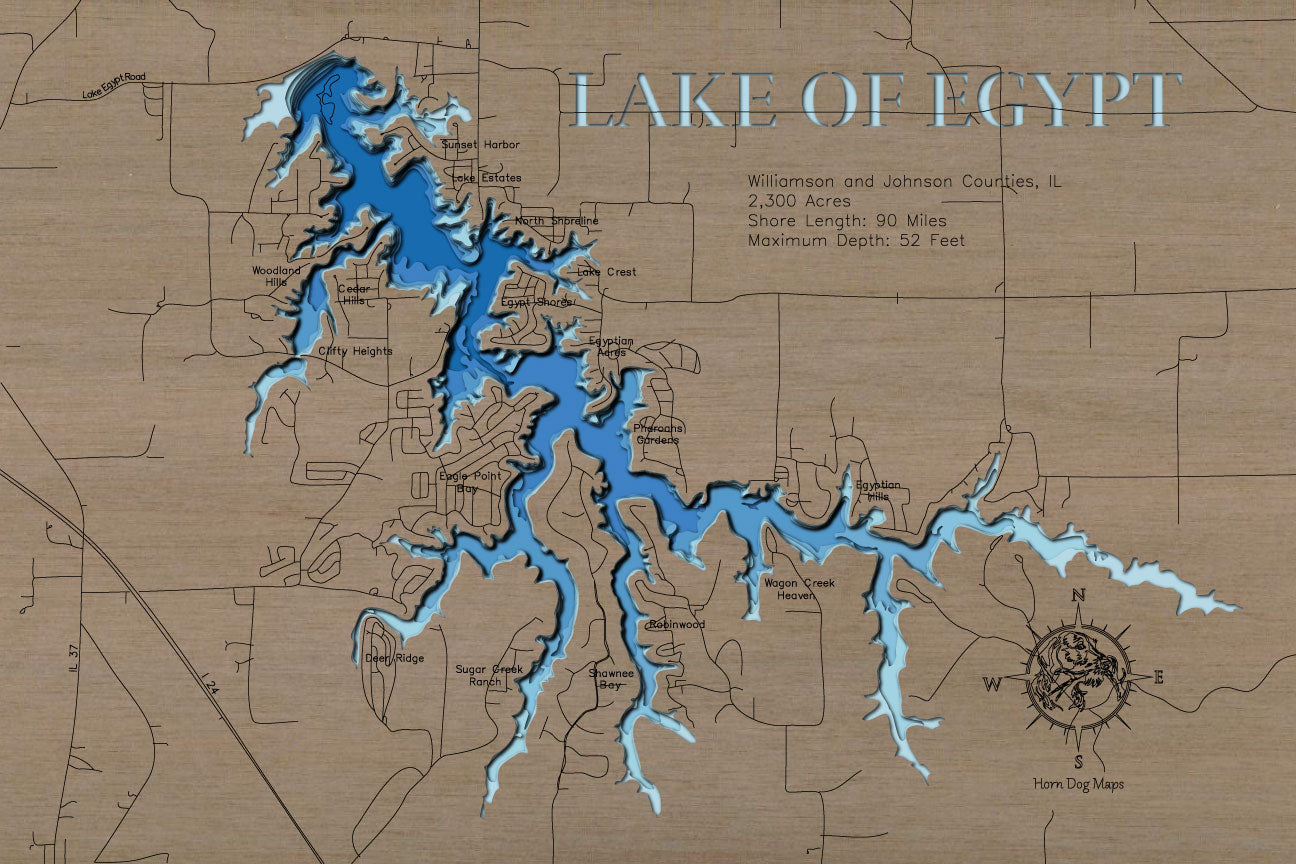 Lake of Egypt, Illinois 3D Wood Map | Laser etched Nautical Wall Art