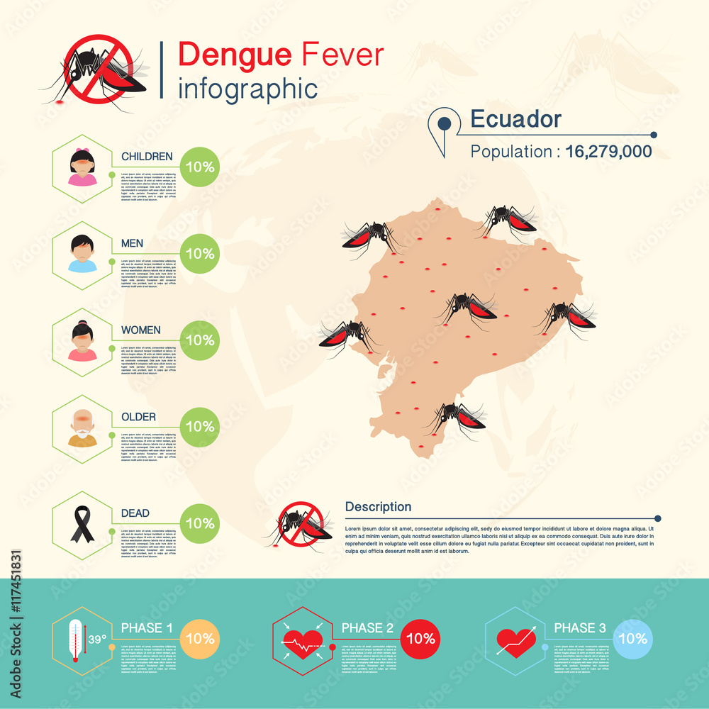Dengue fever and Zika virus,Malaria Infographic,Ecuador Map Stock
